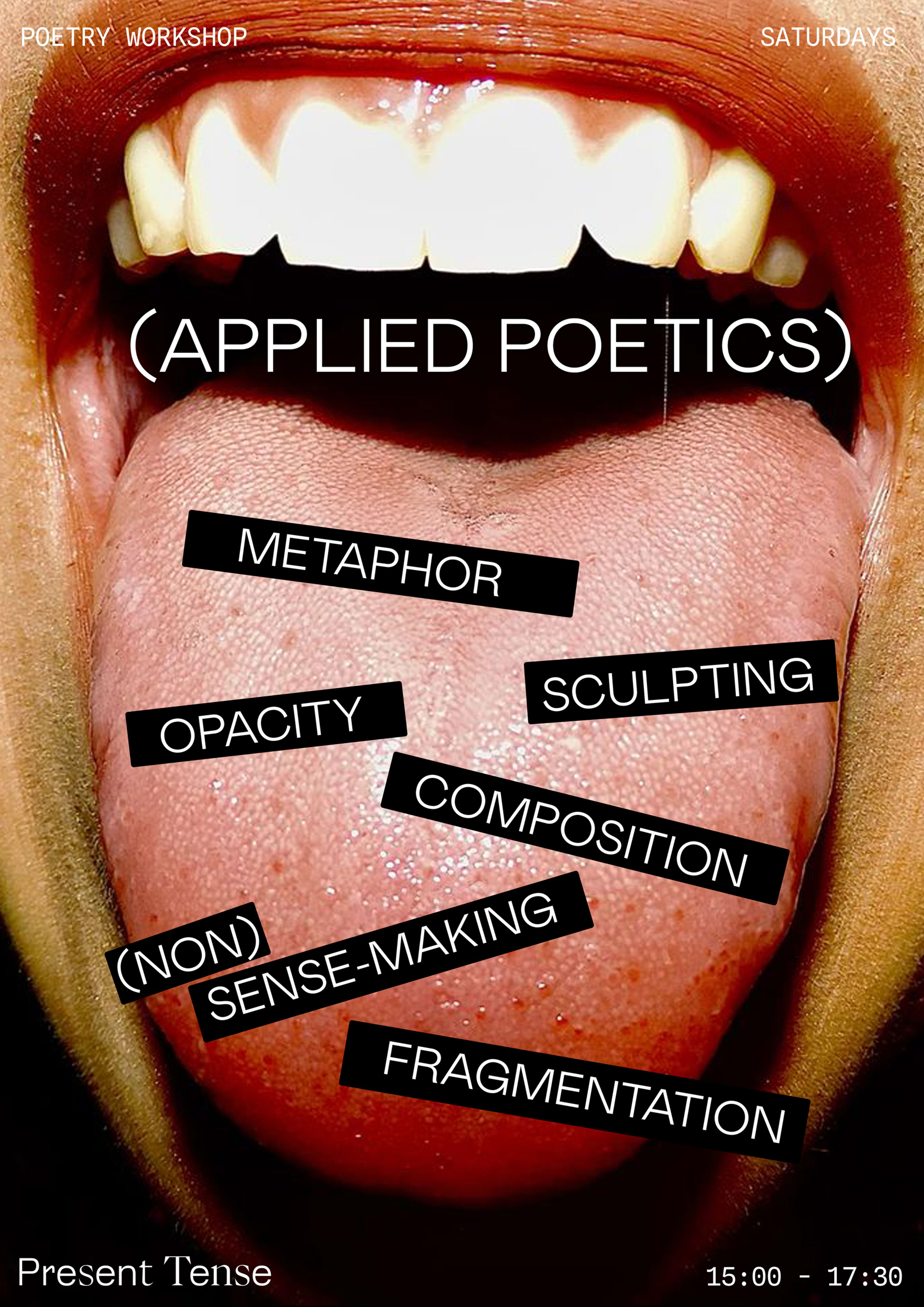 Applied poetics is a new workshop series that draws on philosophies of art -making, object formation, and self enquiry to support formation, and self-enquiry to support the creation and shaping of writing into poetic form.