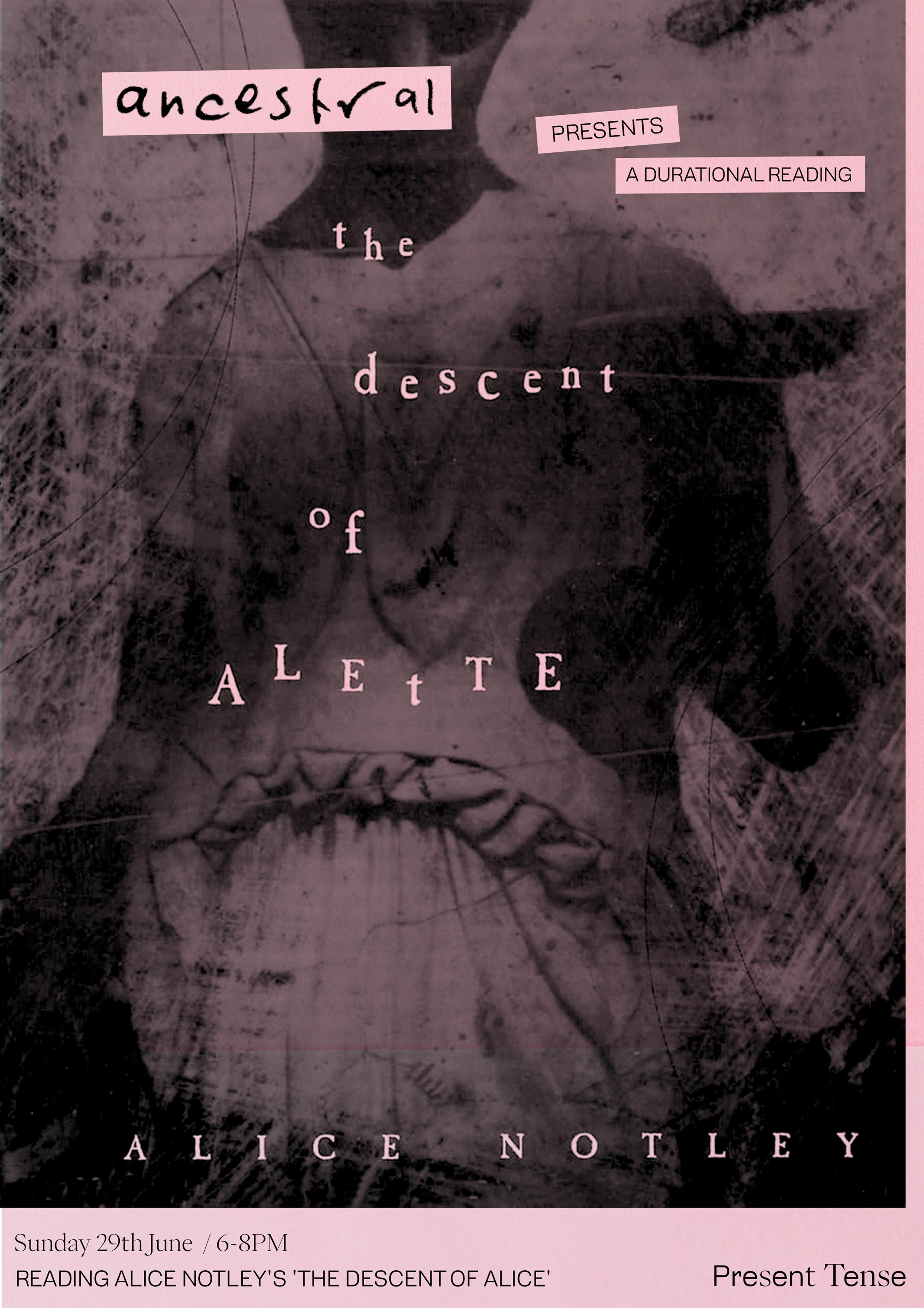 We will read this work together, taking turns round a circle. This will be a relaxed reading with people free to quietly come and go as they please. The reading will be continuous until the time in Present Tense comes to an end. Candles will be lit as a gesture to the late Alice Notley, please bring a candle to contribute to the alter if you wish.